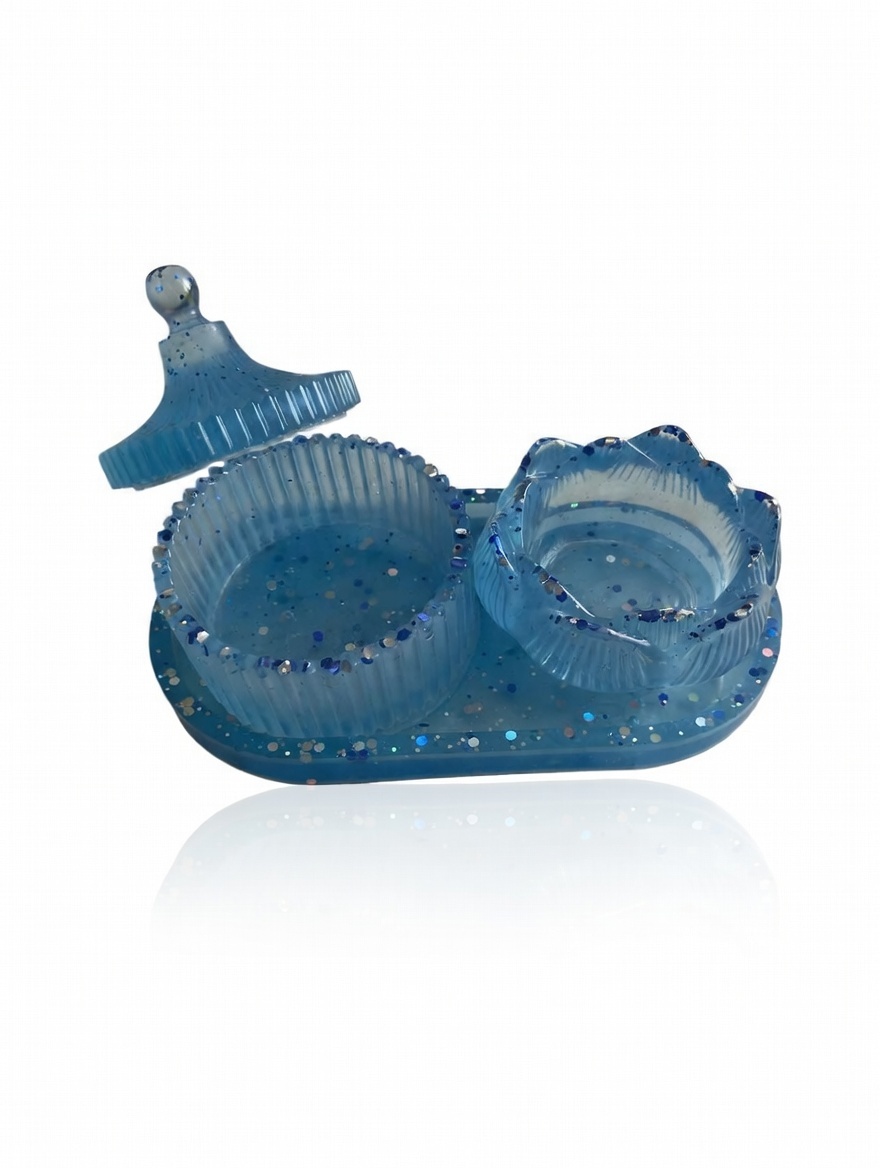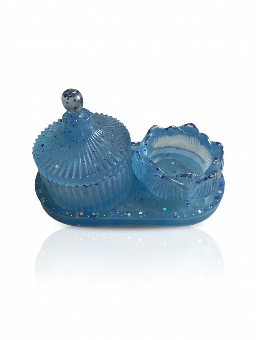 This handmade set combines functionality with artistic craftsmanship. Thanks to the unique resin structure and shimmering effect, it brings a touch of luxury and harmony to any interior.
