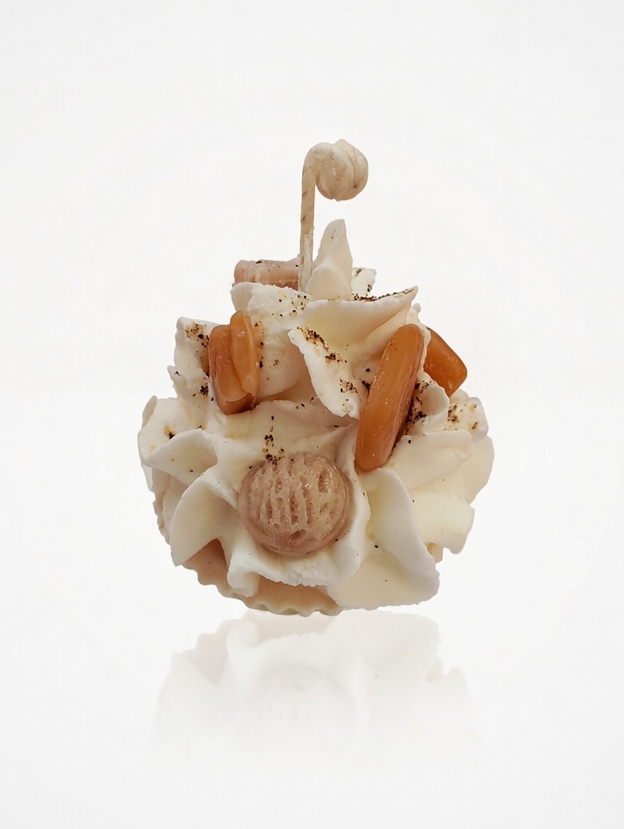 Indulge your senses with this irresistible candle that looks just like a freshly baked holiday treat. This muffin-shaped candle, featuring a creamy whipped topping and tiny sweet accents, brings a cozy and playful vibe to your home. It’s the perfect accessory for anyone who loves sweets and unique decorative pieces.