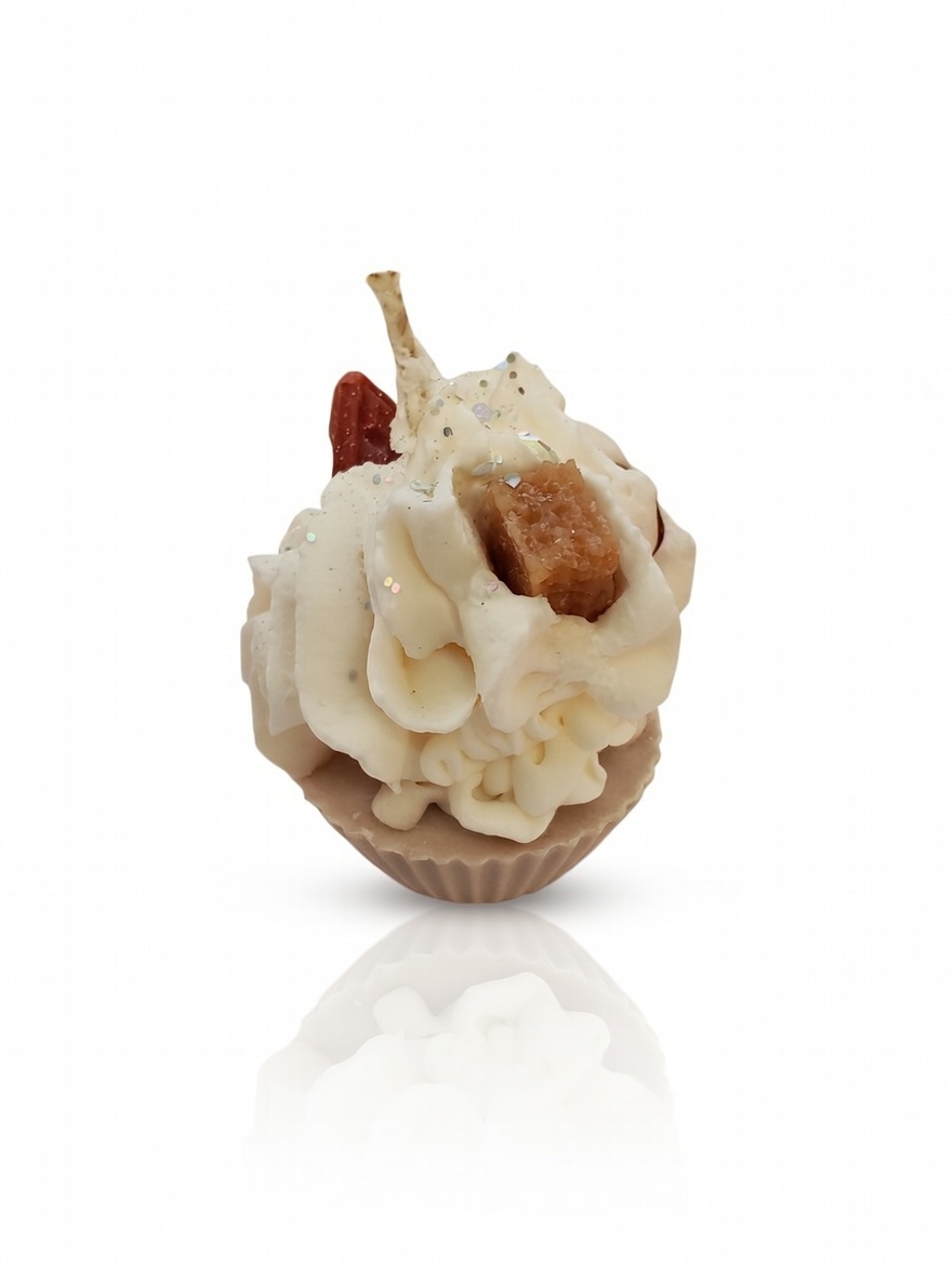 Design: A highly detailed replica of a muffin with realistic wax “frosting” and a touch of glitter.