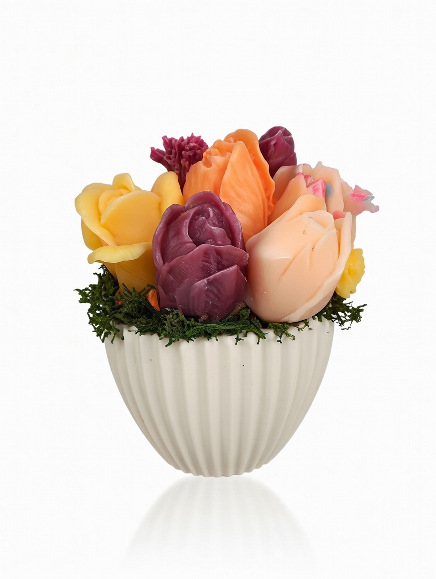 This handcrafted floral set represents the perfect synergy of artistic soap making and craft ceramics. Thanks to the detailed craftsmanship of every petal, the bouquet looks luxurious and realistic. It is an exceptional gift that brings both visual elegance and a delicate, refreshing aroma to any home.