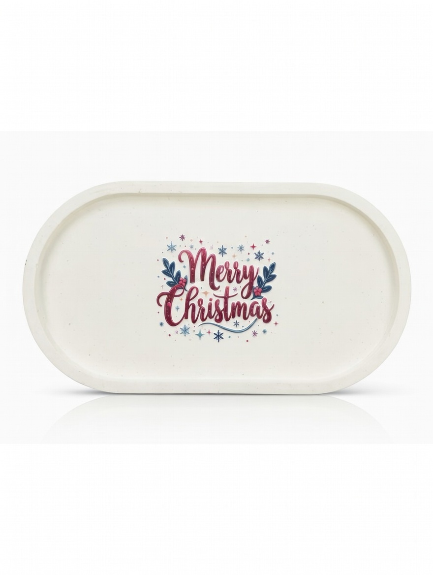 Elevate your holiday home styling with this chic, minimalist decorative tray. Featuring a beautiful “Merry Christmas” script surrounded by delicate stars and snowflakes, this piece combines modern aesthetics with traditional holiday cheer. Its subtle speckled texture gives it a high-end, handcrafted look.